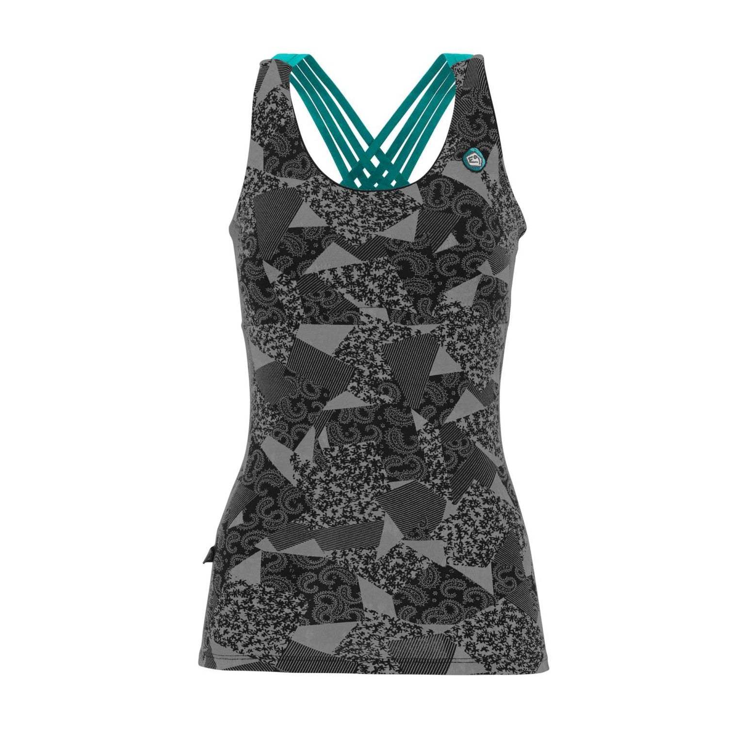 Canotta con bra integrato e coppe removibili, realizzata in cotone biologico bielastico per garantire sostegno, comfort e libertà di movimento.